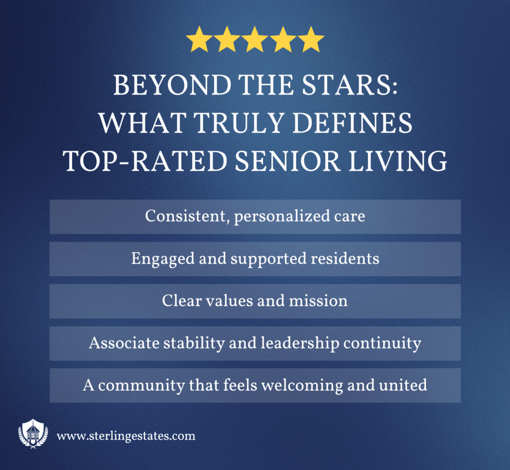 Finding a top-rated senior living community in the Atlanta area is about more than online rankings or how many stars they have. While ratings can offer a starting point, the most trusted communities are defined by how they support residents day to day through meaningful relationships, consistent care, and a fulfilling and engaging lifestyle. Knowing where to look and what truly matters helps families move beyond star counts and toward a confident, informed decision.